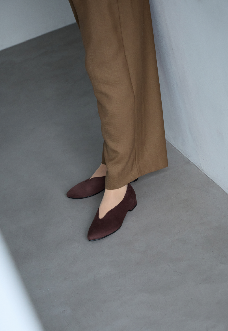 今年気になるテーラードタイプはフラットパンプスで⾜元に抜け感を。