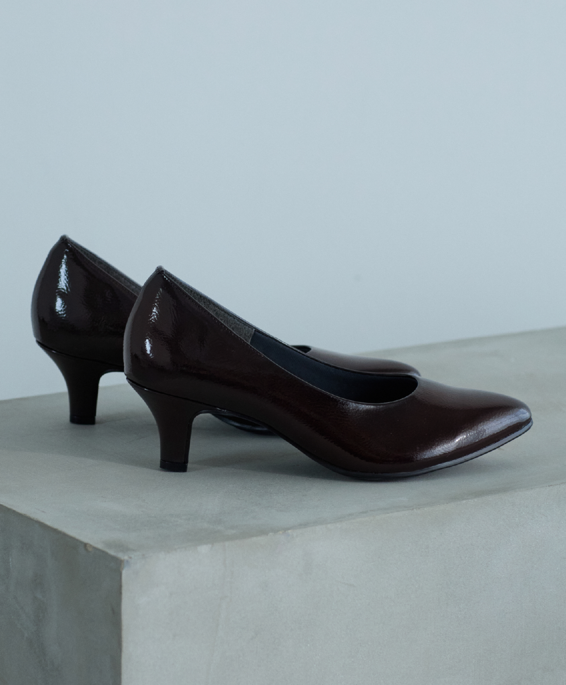 約5㎝ヒールのポインテッドトゥパンプス。取り外しが可能な立体型サポート中敷には、やわらかく、クッション性の良い素材を採用しやわふわな履き心地。