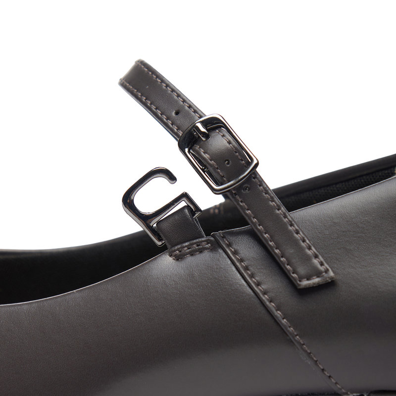 ・約3.5㎝ヒールのスクエアトゥのベルト付きパンプス。