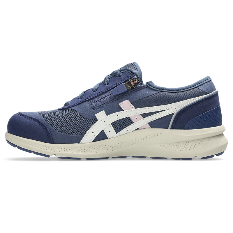 ハダシ感覚の履き心地を追求した、軽量でスポーティなウォーキングシューズのロングセラーシリーズ、HADASHIシリーズのニューモデル。足入れ感のよさや脱ぎ履きのしやすさはそのままに、クッション性とデザイン性、耐久性をアップデートしました。アッパーは通気性があり、やわらかなメッシュ素材です。内側にファスナーを配置し、脱ぎ履きも簡単。かかと部と前足部、中足部の溝が連動することで歩行時の左右のブレを抑え、安定性を高める「グルーヴチェンジ」構造のソールを搭載。ミッドソールにはクッション性の高い素材を採用。かかと部にはクッション性と軽さを兼ね備えたfuzeGELを搭載し、着地時の衝撃を緩和します。かかと部のミッドソールには反射素材を配置し、夜間の視認性に配慮。中底にクッション性のあるシートE.V.A.を採用することにより、快適な履き心地を追求しています。中敷つま先部の裏側に消臭繊維MOFFを配置。アシックスのアイコンであるアシックスストライプをあしらった、スポーティなデザインで、履き口をパイピング仕様にすることで、すっきりしたシルエットに仕上げています。