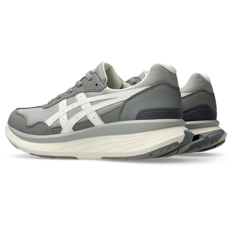 「あなたのひざを快適に」をコンセプトに、O脚などひざ関節の内反に伴う、ひざへの負担を軽減するウォーキングシューズ・KNEESUP(ニーズアップ)。タウンユースやトラベルに活用したい、スポーツカジュアルモデルです。産・学・医で共同開発のクッション機能「MCCS」を搭載。靴底内側に配置したクッションが、かかと荷重時にたわむことで外側から内側に傾斜。ひざ関節を内側へ誘導することで、ひざへの負担を軽減しています。ミッドソールはスムーズな歩行をサポートする舟底設計を採用。かかと部には衝撃緩衝機能GELを搭載しています。足なじみのよいポリウレタン素材を採用したインナーソールは、立体形状で高いフィット感を追求。かかと部のカウンター(かかと芯)は、外側着地によるかかとの内倒れを抑えるため、内側を長く設計。アッパーにはニット調メッシュを採用。レイヤー感のあるパーツ構成により、カジュアルな印象に仕上げています。アシックスストライプの一部に反射材を採用し、夜間の視認性に配慮。アシックスストライプがアクセントになったスポーティなデザインで、デイリーユースからウォーキングまで汎用性の高いアイテムです。ゆったりした履き心地の4Eウィズ相当です。