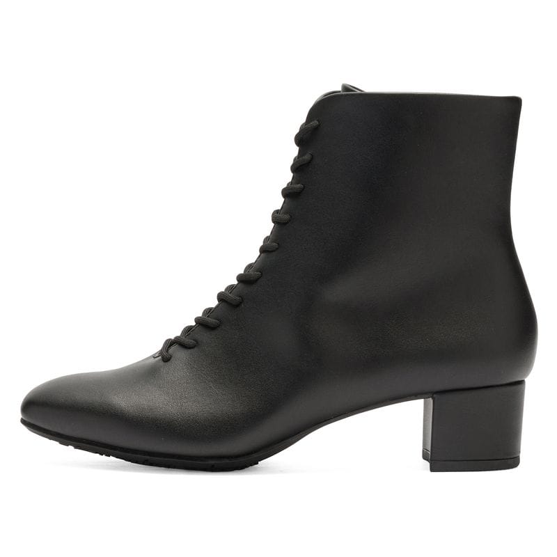 ・約4センチヒールのスクエアトゥのレースアップブーツ。