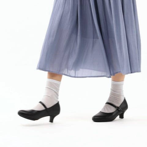 仕事でも活躍!約5㎝ヒールのベルト付きラウンドトゥパンプス