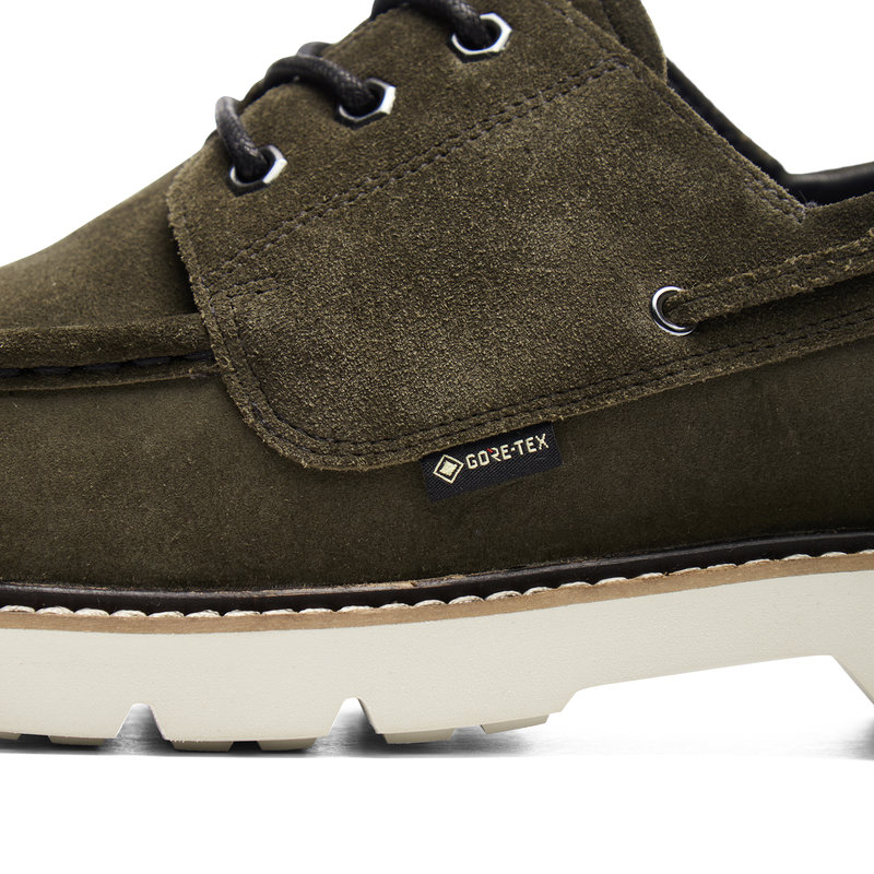 ・耐久防水性と透湿性を兼ね備えたGORE-TEXファブリクスをライニング(裏材)に採用し、雨の日でも晴れの日でも、足をドライに保ち、快適な靴内環境を実現。