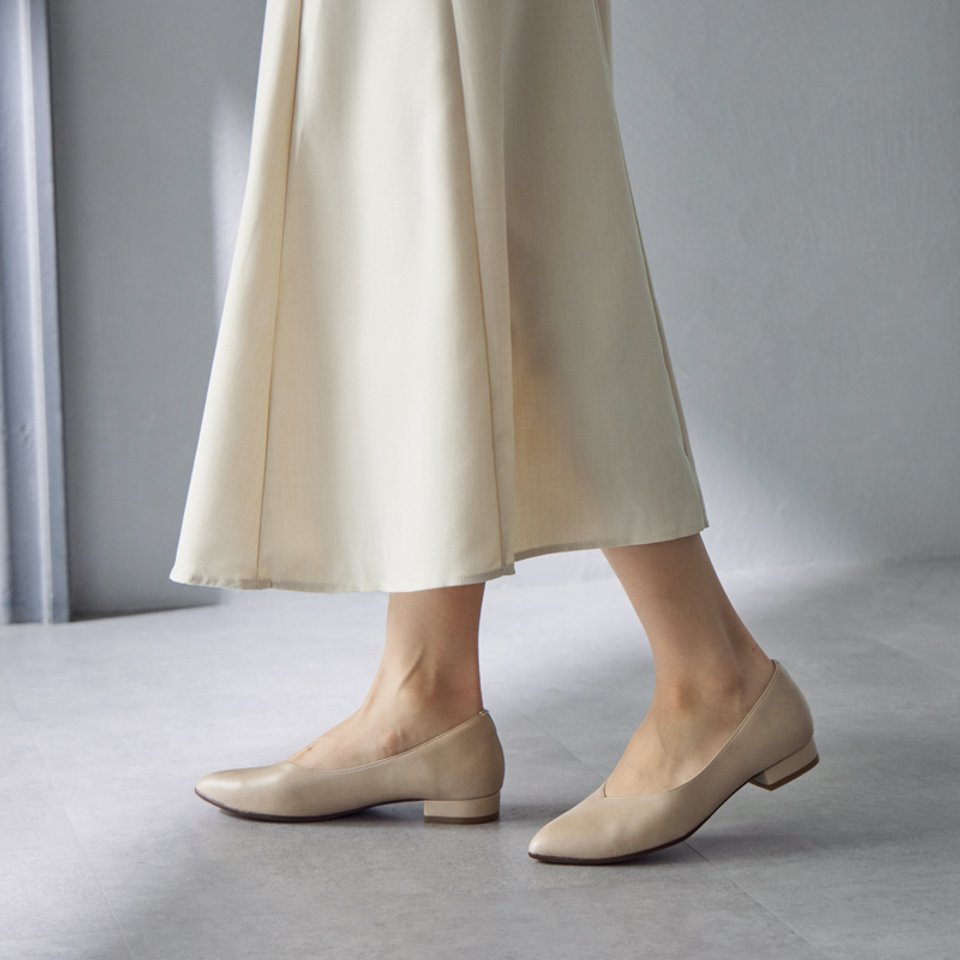 Vカットデザインで足元スッキリ「やわふわ美パンプス」MADE IN JAPAN