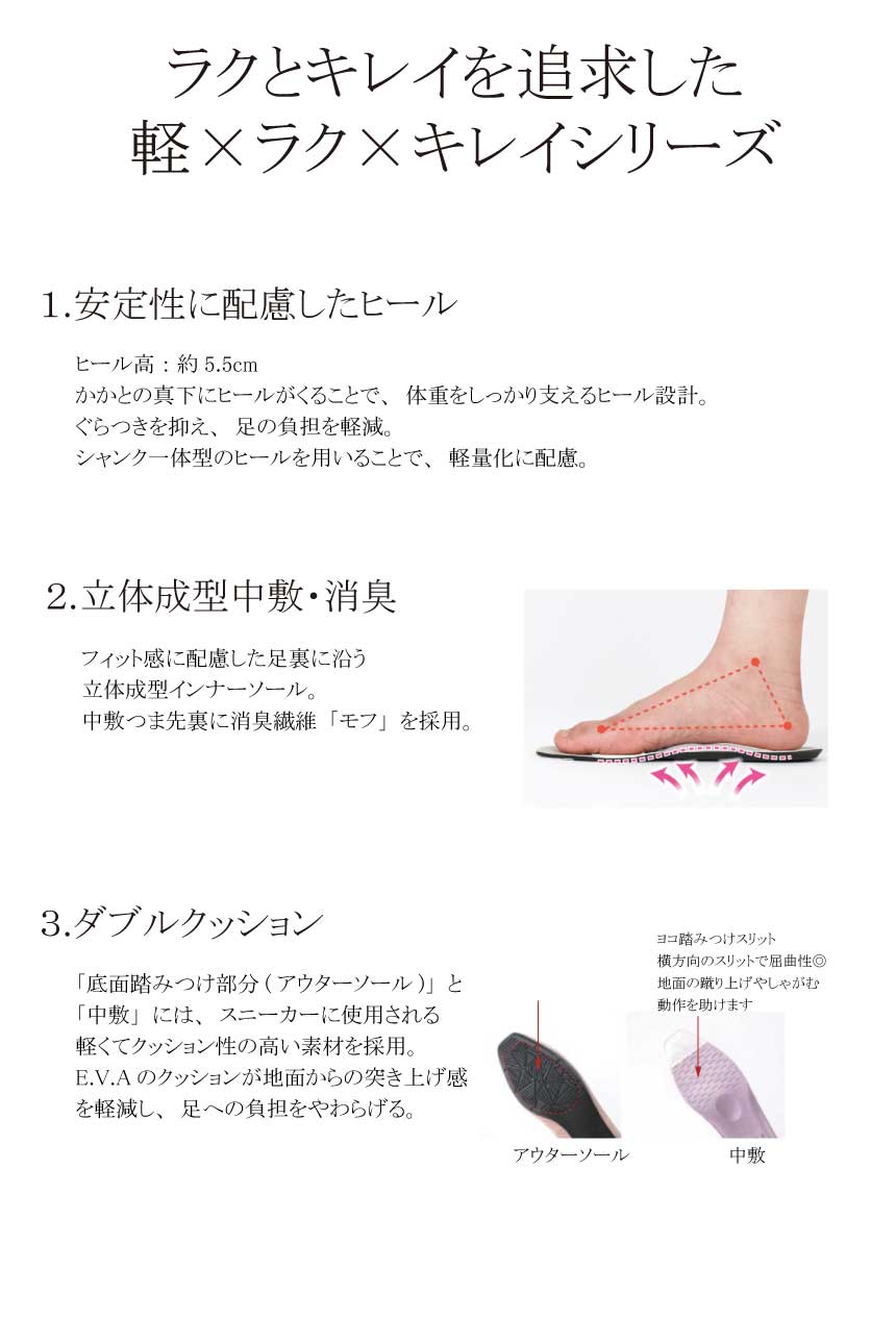 ・静音性に配慮したヒール素材を採用。