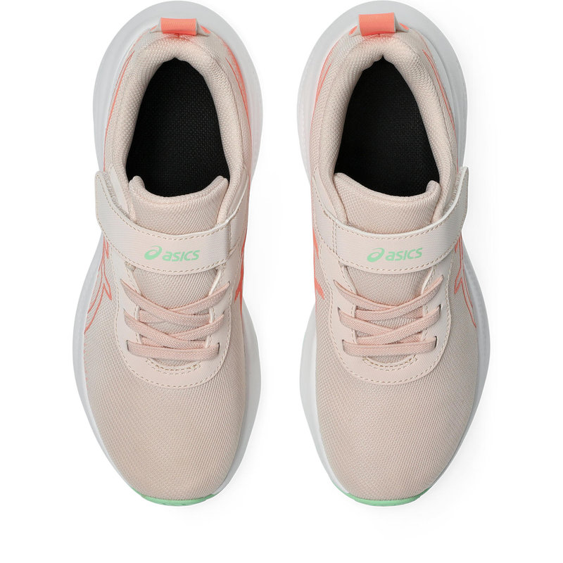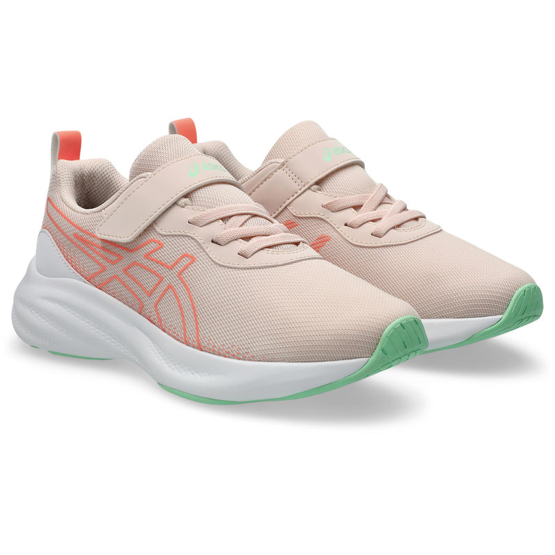 アシックススポーツ工学研究所のデータをもとに作製したキッズ専用ラストを採用、シンプルさと履き心地にこだわったクッションモデル。