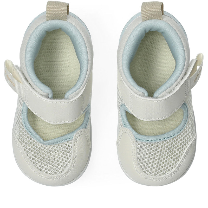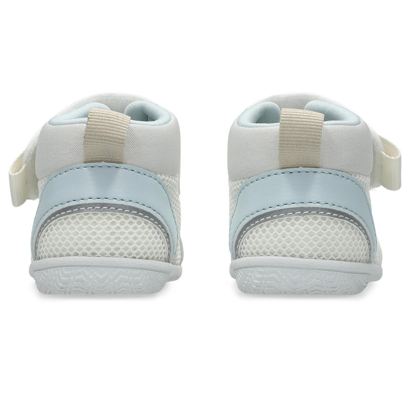 つま先を大きく巻き上げる形状でつまずきにくくし、スムーズな歩行をサポート。3D設計のファーストシューズ専用インナーソールにより、赤ちゃんの小さなかかとを包み込み、安定性を高めます。