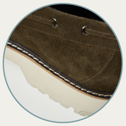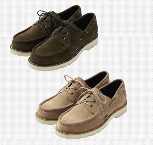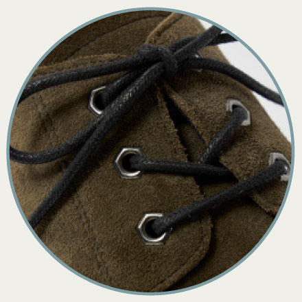 履き始めから足馴染みがよく、見た目にもしなやかな毛足短めのスウェードアッパー仕立て。六角形のガンメタリックのハトメを取り入れるなど、そのさり気ない遊び心にもご注目を。