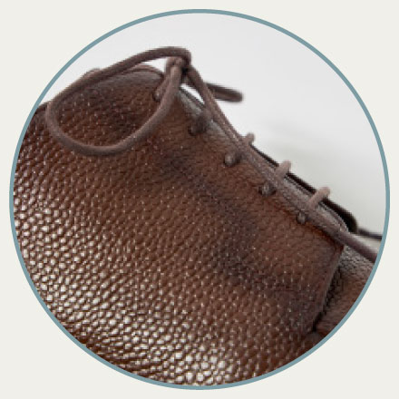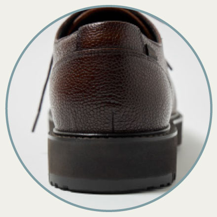 アッパーとソールを貼り付けるレザーウェルトをあしらうことで、レザーシューズとしての価値観をブラッシュアップ。着脱で傷みやすいスベリ部分は、人工皮革できちんと補強済み。