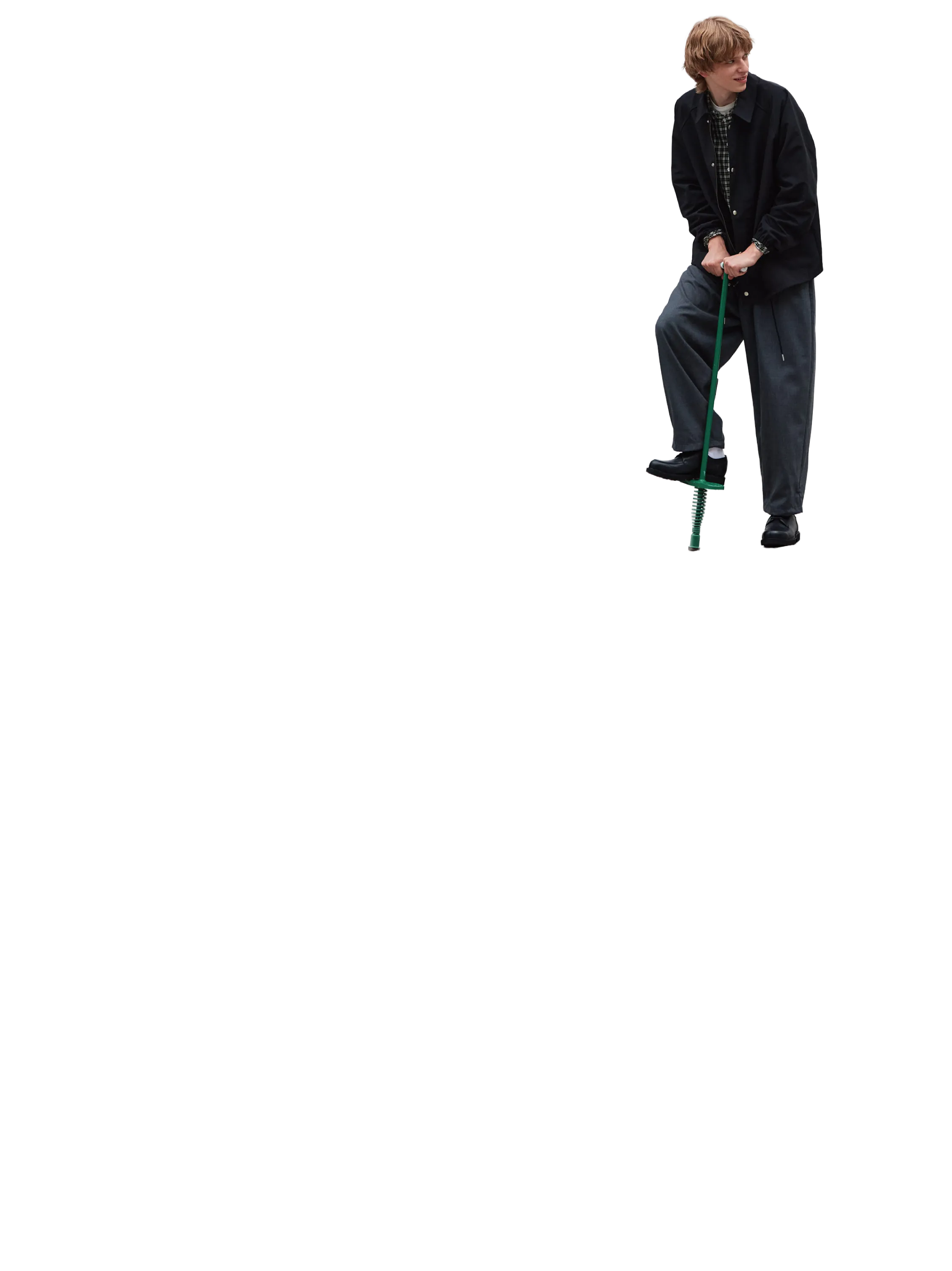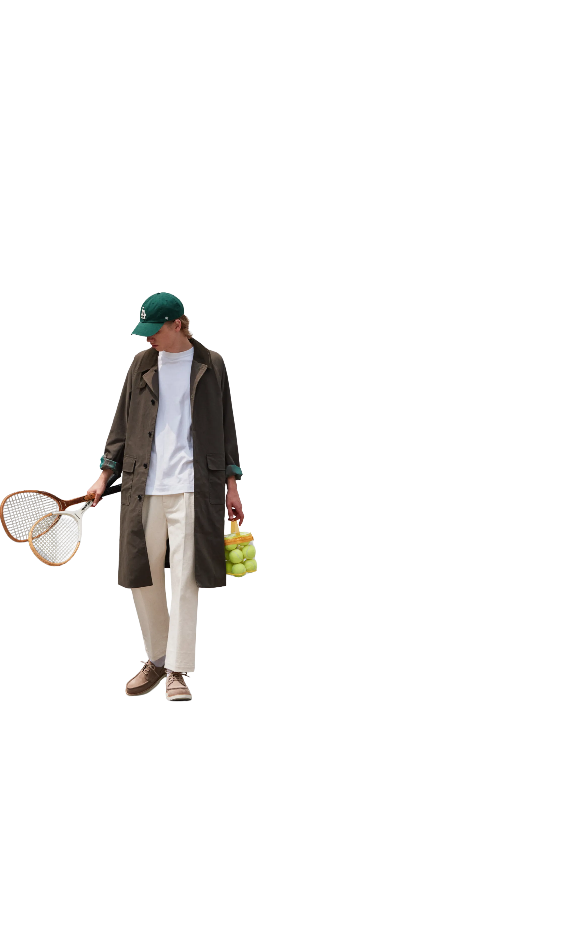 コーチジャケットを中心に、シックなカラーリングでまとめたストリートミックス。これを "大人顔" に整えてくれる存在こそが、そう「TU-8019」。ちょっとしたやんちゃ感も包み込んでくれる懐の深いデザインは、まさに日々の相棒なのだ。