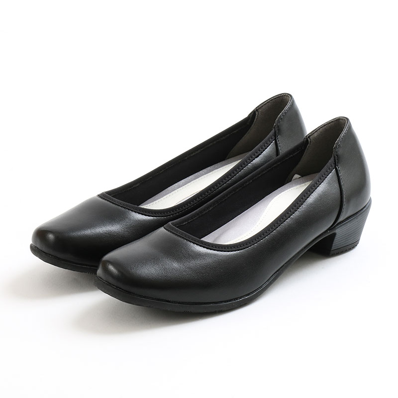 素材は本革や合成皮革で、色は黒のパンプスが基本です。